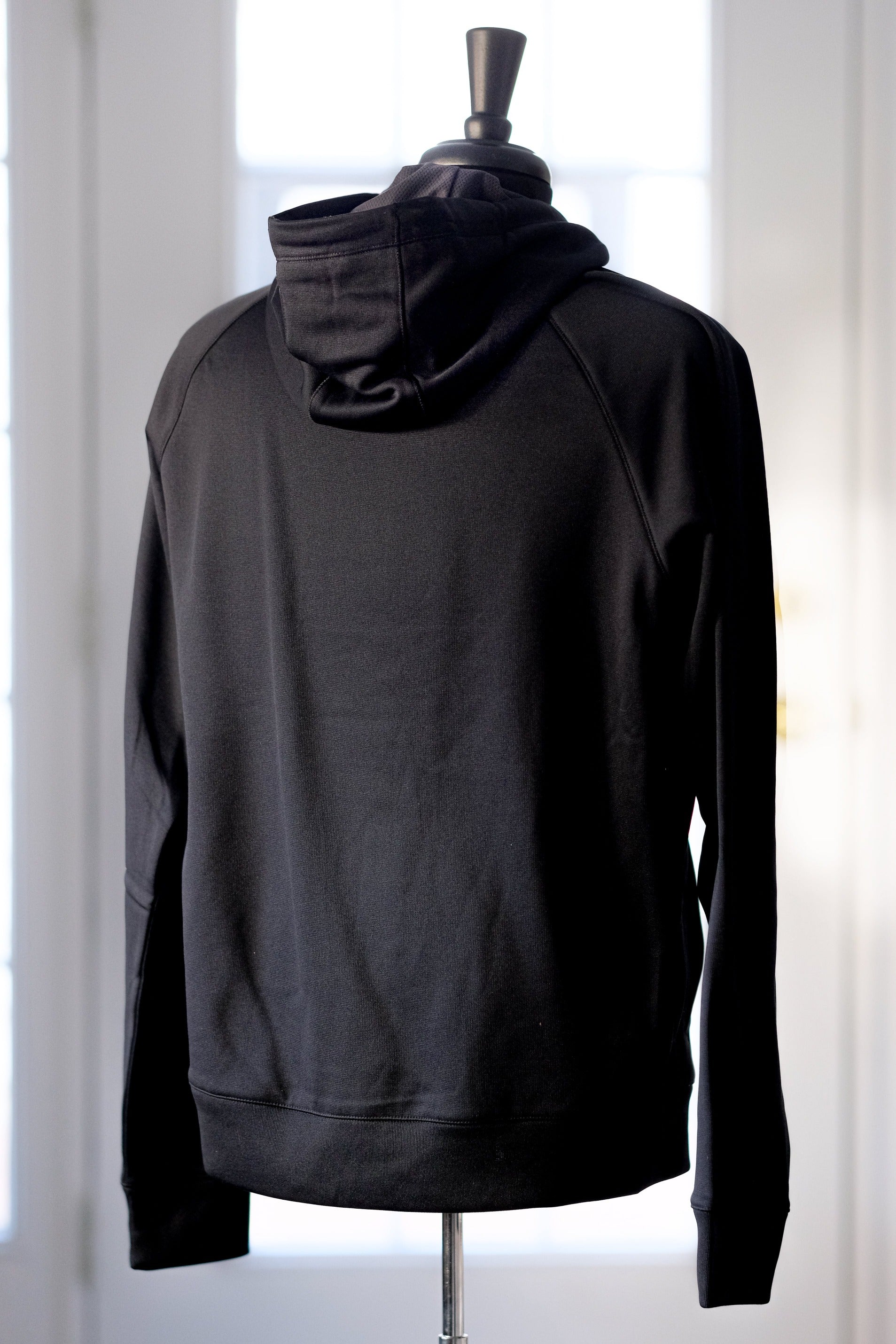 Snag-resistant and pill-resistant with a matte finish, the double-knit construction enhances breathability and moisture wicking, while a Graphite mesh hood lining and two-tone drawcord add an athletic edge.